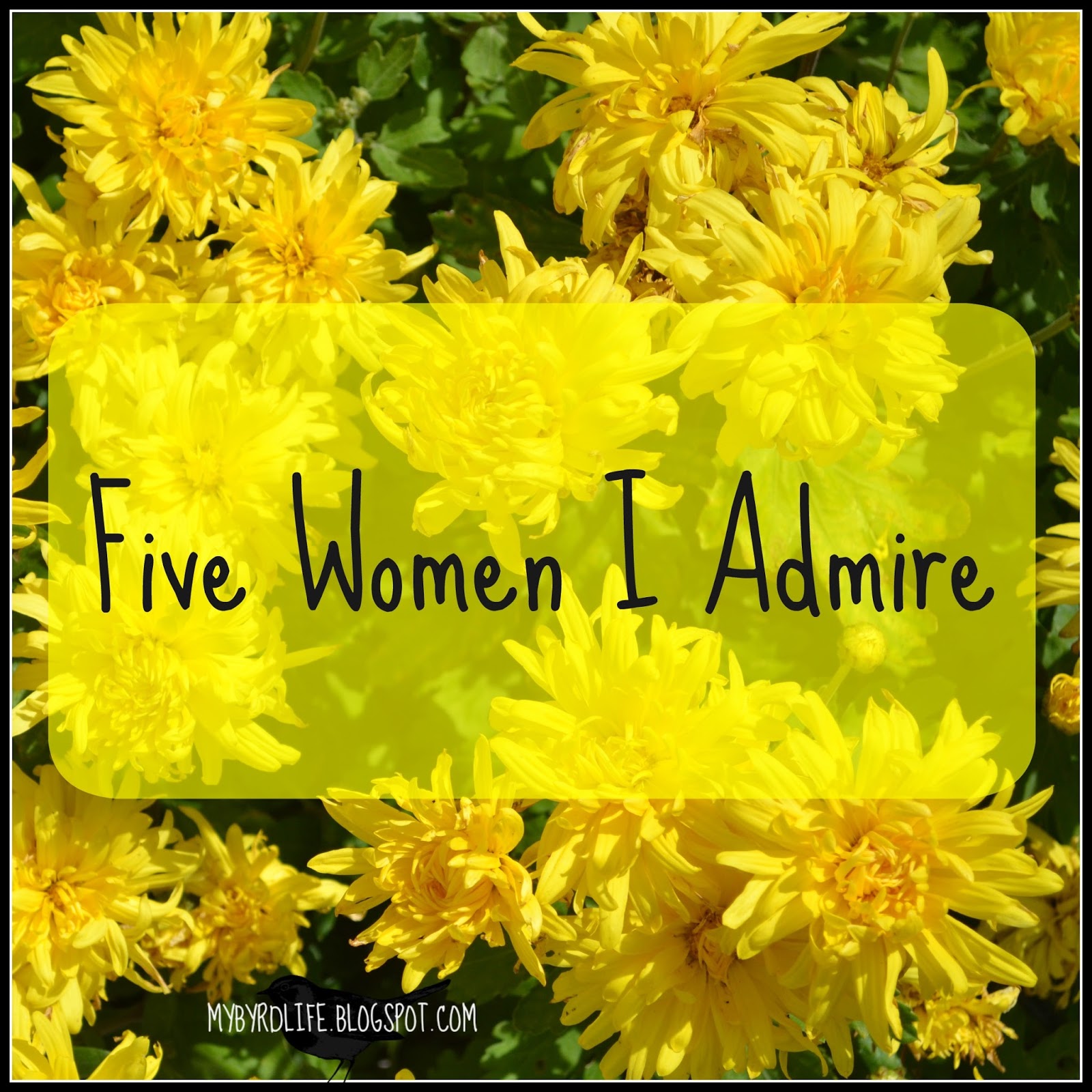 I was excited to tackle this topic because there are so many wonderful women in my life that have been positive influences. It was hard to narrow it down to five but somehow I managed. I am so thankful to have had such positive female influences in my life. There are a number of authors, bloggers and podcasters that have been influencial in my life so I definitely wanted to include at least one in addition to “in real life” people. I hope you’ll enjoy my list and let me know about some of the fabulous women in your life.